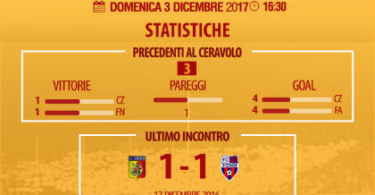 Le due squadre al “Ceravolo” si sono incontrate 3 volte, con 1 vittoria a testa e 1 pareggio