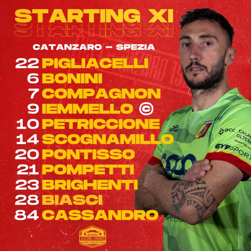 Tommaso Cassandro avanzato nel ruolo di esterno a destra e confermate le posizioni di tutti gli altri, con il 3-5-2 usuale: Pigliacelli; Brighenti, Scognamillo, Bonini; Cassandro, Pompetti, Petriccione, Pontisso, Compagnon; Iemmello, Biasci.