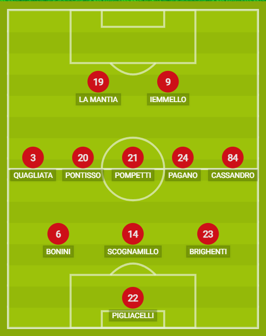 Indisponibili: Compagnon, Antonini, Buso. Squalificati: nessuno. Diffidati: Iemmello, Pittarello, Pontisso, Coulibaly.