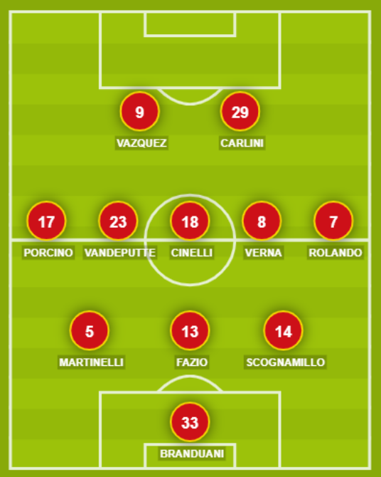 Indisponibili: Montipò, Lasagna, Faraoni, Rüegg. Squalificati: nessuno. Diffidati: nessuno.
