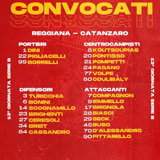 A parte il giovane Marcello Piras e i quattro grandi assenti per infortunio (Matias Antonini, Mario Situm, Jacopo Petriccione e Andrea La Mantia), tutti gli altri calciatori della rosa sono partiti per la trasferta emiliana.