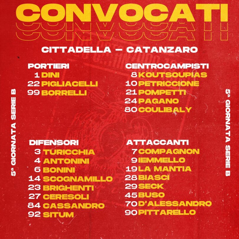 Dopo la sosta nazionali riprende il campionato di serie BKT, il Catanzaro sarà di scena al “Tombolato” per affrontare l’ostico Cittadella di Gorini, a una sola lunghezza dal terzetto di testa. Il cammino dei veneti è stato in crescendo e dopo la sconfitta alla prima giornata contro la Salernitana il Cittadella ha prontamente rialzato la testa con un pareggio e due successi, l’ultimo dei quali ottenuto a Modena.
