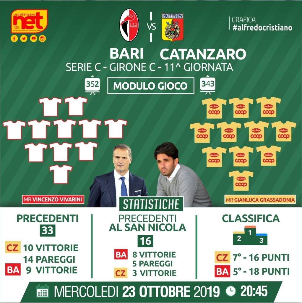Mister Grassadonia non avrà il tempo di conoscere a dovere i suoi nuovi calciatori e viceversa che il Catanzaro è subito impegnato in una trasferta complicata come quella di Bari. I galletti sono una compagine che dopo l’esonero di Cornacchini sta risalendo la china, come era lecito attendersi.