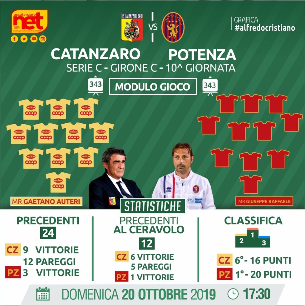 L’anno scorso, il 16 settembre 2018, alla prima in campionato finì 1-0 con rete di Ciccone su calcio di rigore dopo 5 minuti di gioco. Le squadre non si affrontavano dalla stagione 2006/2007, quella post fallimento dell’Uesse. Alla seconda giornata giocata il 10 settembre 2006, i lucani ottennero il loro unico successo al “Ceravolo” imponendosi per 2-3. Dettori al 27’ siglò il vantaggio ospite su rigore; un minuto dopo raddoppiò Nole che in seguito realizzò la doppietta al 63’; si svegliò troppo tardi il Catanzaro che andò a segno con Cuffa al 70’ e Giuntoli all’81’. Era il primo FC, targato Pittelli con in panchina Domenicali, dopo il fallimento Parente-Poggi.