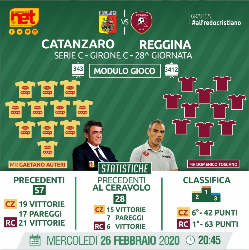 Il Catanzaro si presenta al derby sesto in classifica con 42 punti frutto di 12 vittorie, 6 pareggi e 9 sconfitte con 40 gol fatti (terzo miglior attacco) e 32 subiti.