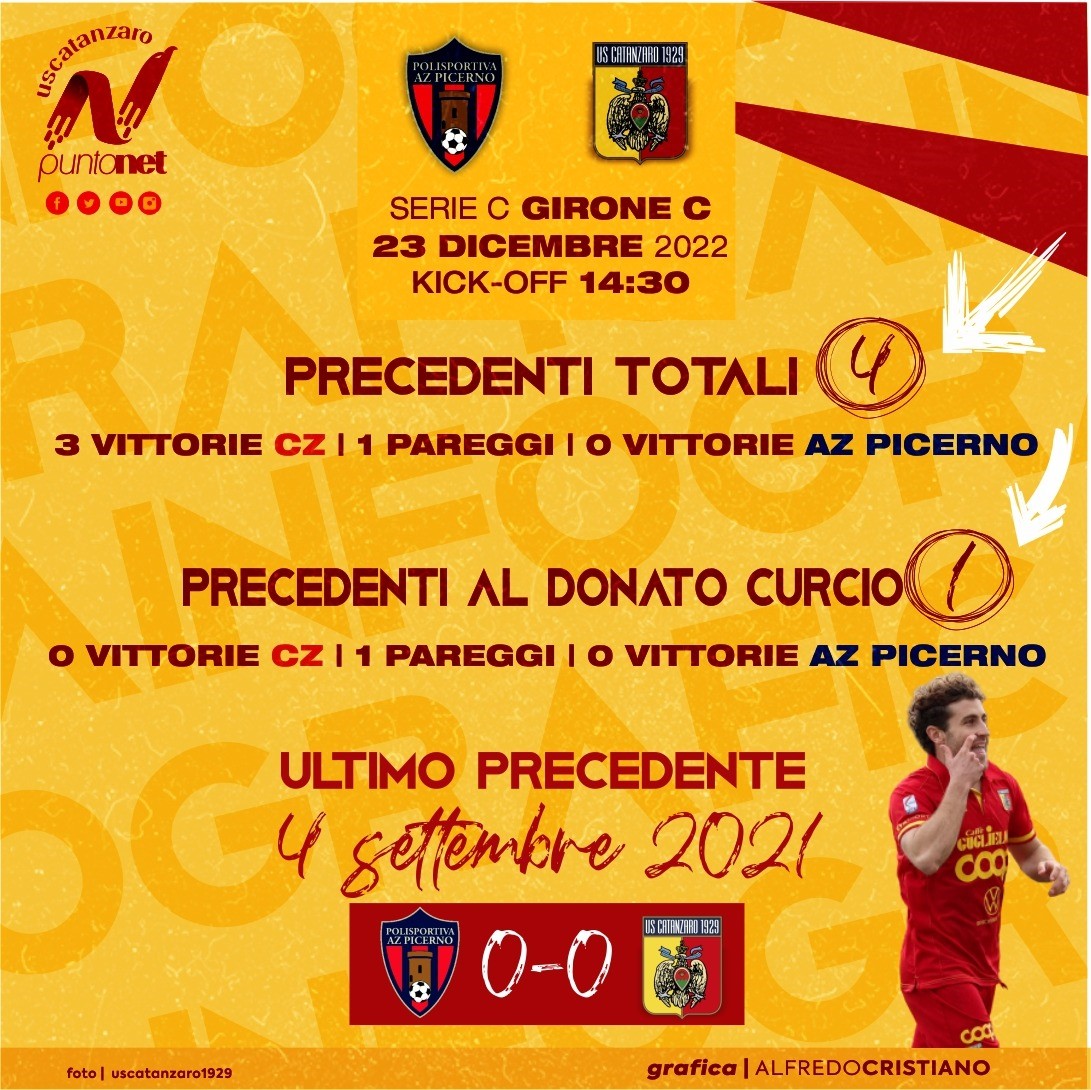 Ultima gara dell’anno solare e prima del girone di ritorno quella che si disputerà venerdì al “Donato Curcio” tra Picerno e Catanzaro.