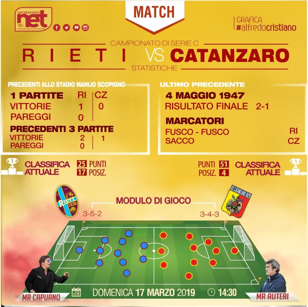 Il Catanzaro deve riprendere il suo cammino. La trasferta di Rieti va presa con le molle ed affrontata nel migliore dei modi per tornare al successo.