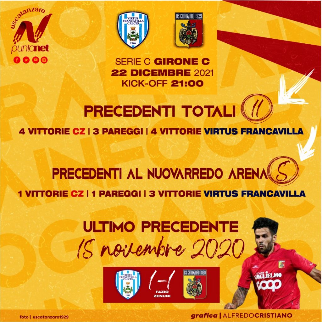 Prima giornata di ritorno per il Catanzaro impegnato in una trasferta veramente molto complicata come quella di Francavilla Fontana contro la Virtus. I giallorossi hanno chiuso il girone d’andata con 32 punti di cui 19 raccolti in casa e 13 lontano dal “Ceravolo”. 9 le lunghezze che separano le Aquile dalla testa della classifica occupata saldamente dal Bari.