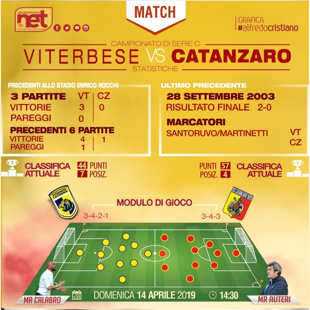 La Viterbese è sicuramente un avversario molto ostico per il Catanzaro. Nei sei precedenti i laziali hanno vinto quattro volte contro una ed un solo pareggio. Dieci a cinque per i gialloblu il computo delle reti.