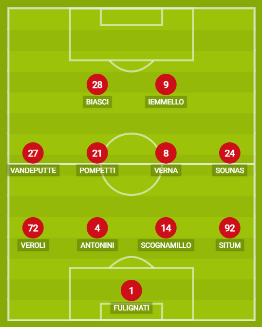 FULIGNATI: Mezzo voto in meno poiché Incerto nell’uscita sul gol del pari spezzino (al netto fallo su Veroli) così in un paio di circostanze in fase di costruzione dal basso. Si riscatta però alla grande, nella ripresa, respingendo la conclusione di Nikolau. Da qui mezzo voto in più. La media dice: Sufficiente. VOTO 6