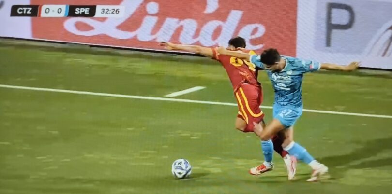 A inizio ripresa, dopo due minuti, ancora un giallo per lo Spezia: il Catanzaro sta attaccando e il pallone esce alto dall’area bianconera verso la trequarti, con Scognamillo che anticipa nettamente Pio Esposito, che, in uno dei tanti duelli col “russo”, spinge il giallorosso da dietro, meritando l’ammonizione.