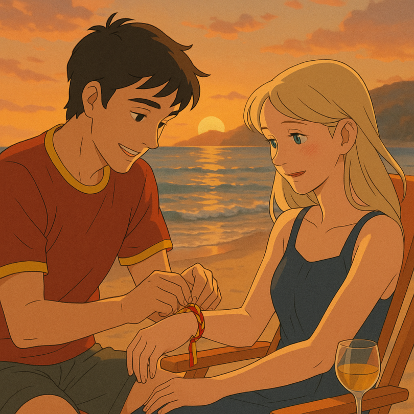 Lui e Ingrid — perché adesso il nome di lei ha un suono dolcissimo nelle sue labbra — si ritrovano sulla stessa spiaggia di Caminia, con i piedi affondati nella battigia. L’acqua è tiepida, scivola lenta e trasparente, e il cielo ha già iniziato a tingersi d’arancio.