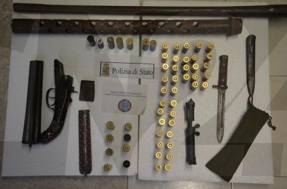 Durante una perquisizione è stato trovato infatti con 45,59 grammi lordi di hashish, un fucile doppietta calibro 16 con le canne tagliate, una canna per mitragliatore calibro 12,5 Browning tipo da guerra, un sistema di puntamento per fucile mitragliatore senza marchio di fabbrica, 15 cartucce calibro 12 caricate a pallini e 2 scatole di cartucce ad uso caccia della G.F.L., calibro 16, contenenti 38 cartucce caricate a pallini.