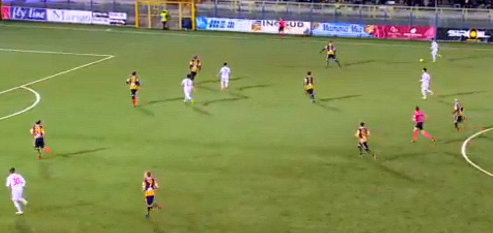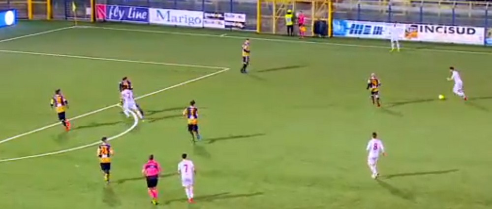 Una delle mosse fondamentali del match è stata quella di spostare Allievi molto avanti tutte le volte che la Juve Stabia iniziava una nuova azione dalla difesa. Sembrava quasi che le vespe fossero disposte con la difesa a 3, in realtà con Allievi molto alto Statella è rimasto più contenuto e meno partecipe all’eventuale ripartenza che il Catanzaro spesso organizza sulla corsia destra.