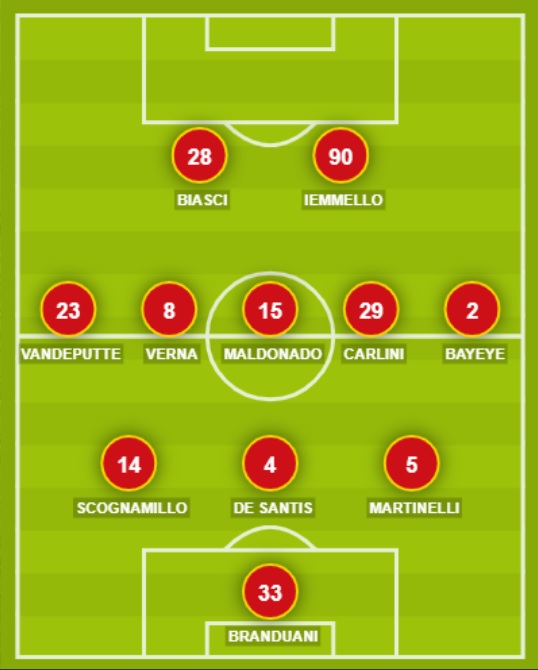 Indisponibili: Bjarkason. Squalificati: Fazio. Diffidati: Martinelli.