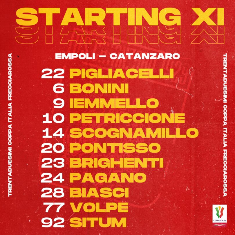 Sembra che Caserta abbia deciso di iniziare con un 3-4-1-2: Pigliacelli; Scognamillo. Brighenti, Bonini; Situm, Petriccione, Pontisso, Volpe; Pagano; Iemmello, Biasci.