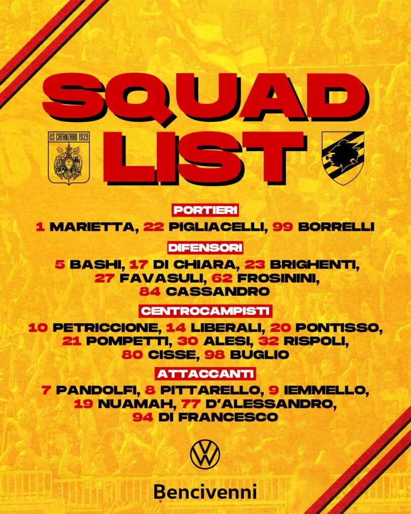 Nessuna sorpresa nella lista dei convocati di Alberto Aquilani. Il tecnico giallorosso ha infatti chiamato tutti gli effettivi attualmente a disposizione, compreso Pandolfi, confermando in pieno le sensazioni della vigilia e dando continuità al lavoro svolto dal gruppo in queste settimane.