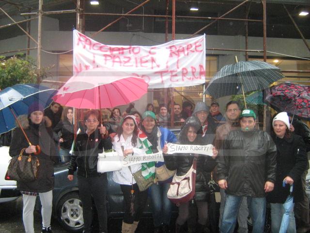 Dipendenti in protestaFacciamo curare i pazienti nella nostra terra”: questo lo slogan con il quale i dipendenti della Fondazione Campanella hanno manifestato, a partire dalle ore 8:30 e sino alle 14:30, davanti gli uffici dell’assessorato alla sanità di Via Buccarelli. Una protesta garbata, ma certamente significativa e chiassosa. Presenti anche numerosi pazienti oncologici. Il sit-in era stato promosso dalle sigle sindacali Ugl sanità, Cisl Fp e Uil Fpl, e dal comitato spontaneo dei dipendenti, per tentare di trovare una soluzione accettabile per i 270 lavoratori che non percepiscono lo stipendio da tre mesi e che rischiamo il posto di lavoro.