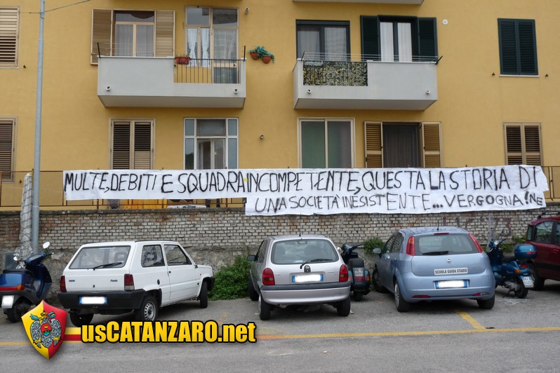 La strana domenica di Franco Quartaroli a Catanzaro, accompagnato allo stadio da Tato Sabadini, vecchia gloria giallorossa. L’orafo piemontese, ultimo pretendente alla poltrona che fu di Ceravolo, si è fermato in città per i colloqui con le istituzioni e i vecchi soci dell’Effeccì, godendosi in tribuna la partita contro l’Aversa. Nella gallery tutte le immagini di un “Ceravolo” sempre più deserto, “colorato” solo dagli striscioni di contestazione (dentro e fuori dallo stadio) del gruppo di ragazzi riuniti sotto la sigla New Eagles.