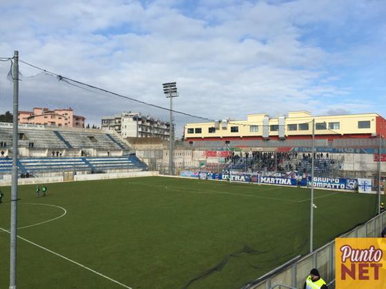 Alla vigilia il timore di una batosta è fondato. Il Martina viene da un buon periodo, il Catanzaro è ridotto ai minimi termini dopo lo smantellamento della squadra costruita in estate e l’esiguo numero di acquisti. Sanderra ha gli uomini contati e deve buttare subito nella mischia i due volti nuovi Zappacosta e Giandonato, mentre Squillace resta in panchina e Russotto in tribuna, ancora fermo per infortunio.
