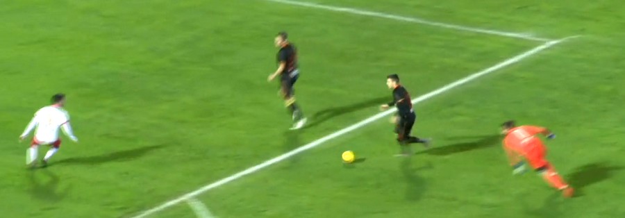 A tempo ormai scaduto Carlini entra in area superando Da Dalt e servendo una palla bassa e tesa per Curiale che infila Abagnale e poi si gira verso Evacuo mostrandogli il tacco della scarpa. Dalle riprese video è chiarissimo il labiale di Evacuo che complimentandosi con il compagno ha risposto testualmente “mbiscamula che è meglio”.