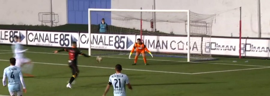Il vantaggio degli ospiti arriva inatteso come un fulmine a ciel sereno, e allo stesso modo pochi minuti più tardi un buon cross di Giannotti viene intercettato da Casoli con un centimetro di spalla e una spanna di avambraccio.