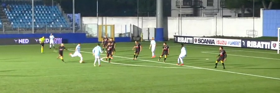 Grazie alla corsa e all’aggressività, il 3-5-2 di Trocini si rivela di buona fattura con una discreta capacità di allargare il gioco e con alcune individualità meritevoli di menzione. Le mezzali DiCosmo e Franco partecipano alla manovra offensiva aggredendo l’area che è presidata da Perez, mentre la seconda punta Ekuban cerca il dialogo sulle fasce con Giannotti o Nunzella.