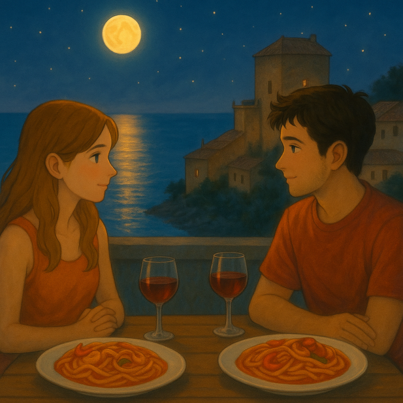Salvatore e Ingrid avevano scelto una piccola trattoria affacciata sul golfo per salutarsi. Le scilatelle al sugo fumavano nei piatti, il Cirò riempiva i bicchieri, e il profumo del pane caldo si mescolava a quello del mare. Ma il vero sapore della serata era un altro: quello dolce e amaro dell’addio.