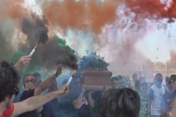 Tra due ali di folla osannanti, la salma è stata portata a spalla verso il carro funebre, sul quale poi è salito anche Padre Fedele Bisceglia, il “monaco” ultrà del Cosenza Calcio. Presenti i dirigenti della squadra e i referenti dell’Amministrazione comunale, che gli intitolerà lo stadio San Vito, Marulla è partito per il suo ultimo appuntamento terreno: un giro nella sua scuola di calcio, il Marca, che non per niente si trova nel popoloso, e popolare, quartiere di via Popilia. Nata per togliere dalla strada tanti ragazzi difficili. Oggi gli striscioni erano tanti. Si potevano leggere frasi come “Salutaci Donato”, in riferimento a Bergamini, o anche “Si è fermato il tuo cuore, ma non la tua leggenda”.