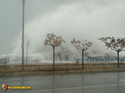 Rimane l’allerta meteo e in questo momento il cielo è coperto e a tratti la pioggia  aumenta d’intensità. Su Viale Isonzo si è aperta una nuova voragine dopo quella che si era creata nei giorni scorsi. Nel quartiere marinaro di Catanzaro è in corso una violenta mareggiata, come testimoniano le foto da noi scattate stamattina. Alcuni abbellimenti del lungomare sono stati danneggiati dalla furia delle onde.
