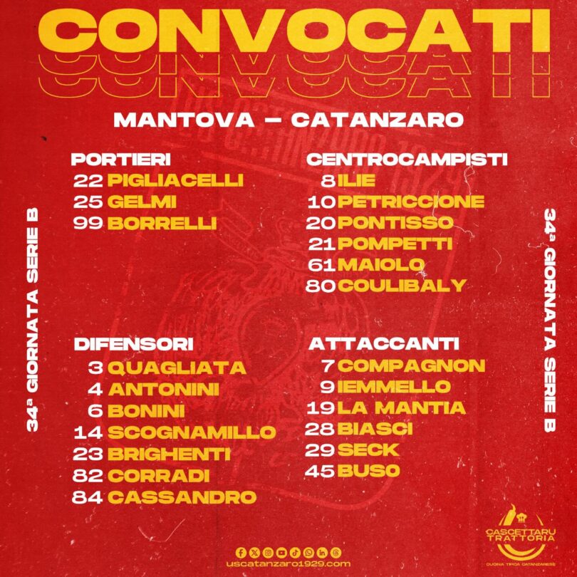 Quattro importanti rientri per Fabio Caserta: il difensore brasiliano Matias Antonini (pronto anche a giocare, come dichiarato dal tecnico), l’esterno sinistro Giacomo Quagliata (che ha ripreso ad allenarsi da pochi giorni), la mezzala Simone Pontisso e l’attaccante centrale Andrea La Mantia.