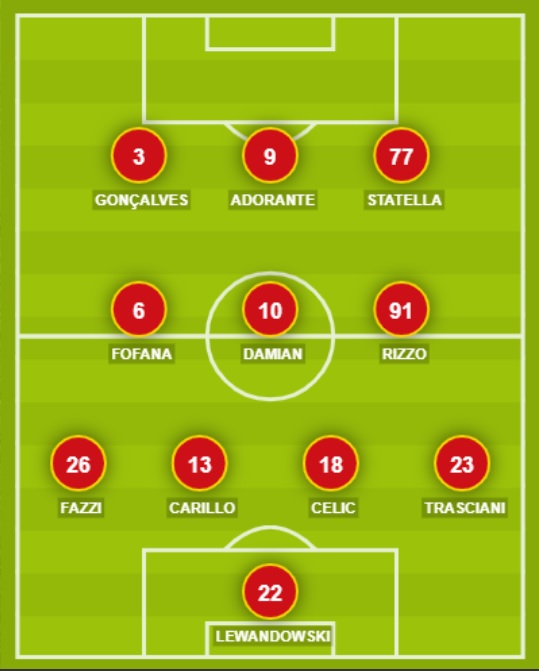 Indisponibili: Fantoni, Burgio, Matese, Distefano. Squalificati: Morelli. Diffidati: Morelli, Simonetti, Rizzo, Russo, Balde, Konate, Piovaccari, Lewandowski.