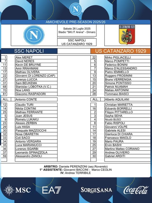 Il tecnico romano sceglie di affrontare i campioni d’Italia mettendo in campo un 4-4-2, facilmente adattabile come 4-2-3-1: Pigliacelli; Frosinini, Antonini, Bonini, Verrengia; D’Alessandro, Pompetti, Pontisso, Nuamah; Iemmello, Biasci.