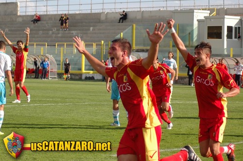 Al 36′ i giallorossi passano in vantaggio grazie al “trattore” Bugatti che di forza risolve una mischia in area campana innescata da un cross al bacio di Squillace. Il gol del puntero argentino dà ragione a mister Cozza che lo aveva mandato poco prima in campo al posto di Esposito. Tre minuti prima del gol, il Catanzaro aveva già sfiorato il vantaggio con una sventola centrale di Gigliotti respinta a mani aperte da Robertiello, sulla corta respinta si era avventato Giampà che non era riuscito a ribadire in gol.