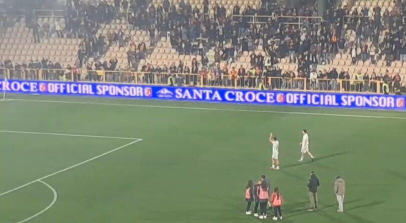 Biasci e Sounas verso la Curva Massimo Capraro non vanno per protocollo. Ci vanno perché lì c’è un pezzo della loro storia. E la Curva risponde come solo sa fare Catanzaro: senza fischi, senza rancori, con quell’affetto ruvido e sincero che non si concede a tutti.