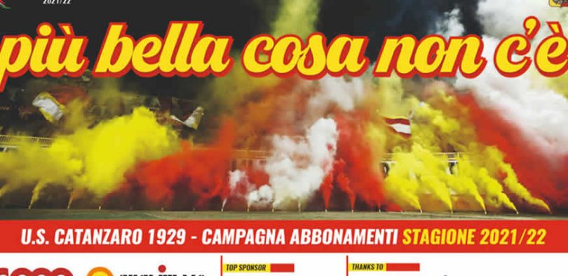 “Più bella cosa non c’è”. È questo il claim con il quale l’US Catanzaro darà il via, il prossimo lunedì 23 agosto, alla campagna abbonamenti per la stagione sportiva 2021/2022. Finalmente, dopo oltre un anno, il pubblico giallorosso potrà tornare al “Ceravolo” e la società ha reso note le modalità di vendita degli abbonamenti con i prezzi per ogni settore.