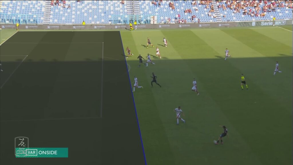 Arriviamo alla nostra copertina: siamo al 36° e Reinhart batte un angolo dalla destra dell’attacco reggiano, Di Chiara respinge di testa fuori area e Marras trova il jolly con un bellissimo tiro al volo dal limite. Ma davanti a Pigliacelli ci sono tre giocatori granata, di cui uno (Portanova), proprio sulla traiettoria della sfera. Il VAR dice che la rete è valida e questa è la seconda gara consecutiva in cui un attaccante giallorosso tiene in gioco l’avversario: questa volta tocca a Iemmello.
