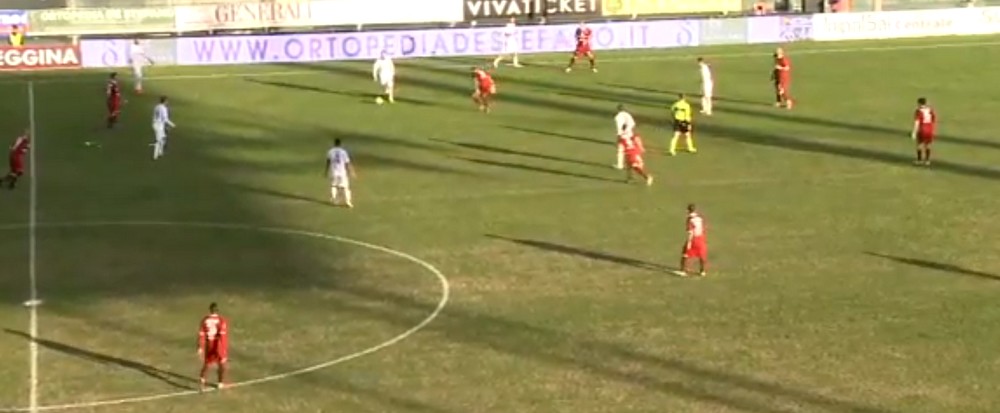 La Reggina cerca la reazione immediata e la trova con Bellomo che punta il cuore della trequarti giallorossa, ma è Favalli a recuperare su di lui portandogli via il pallone e iniziando quella che sarà la sua miglior prestazione in giallorosso dall’inizio del torneo.