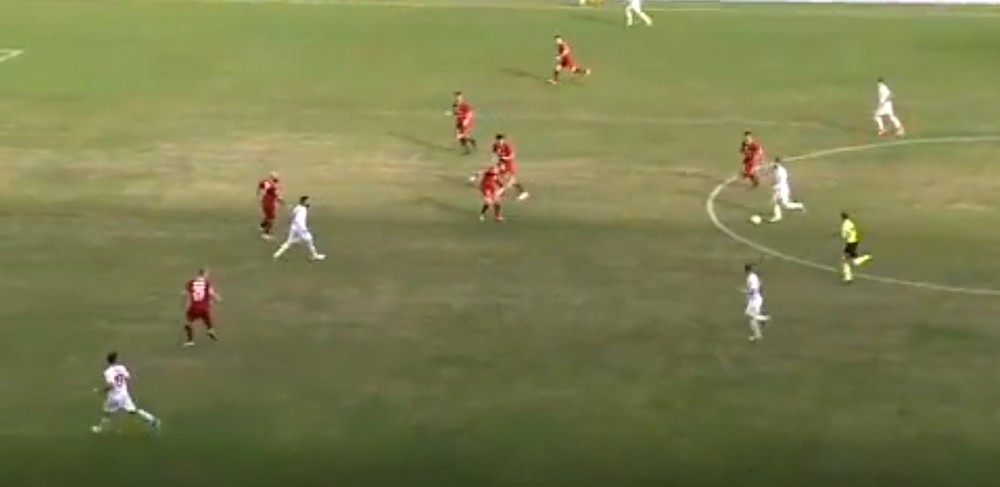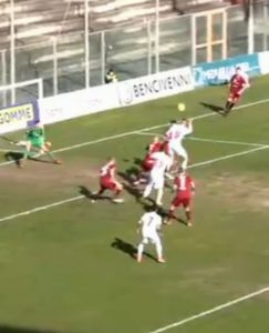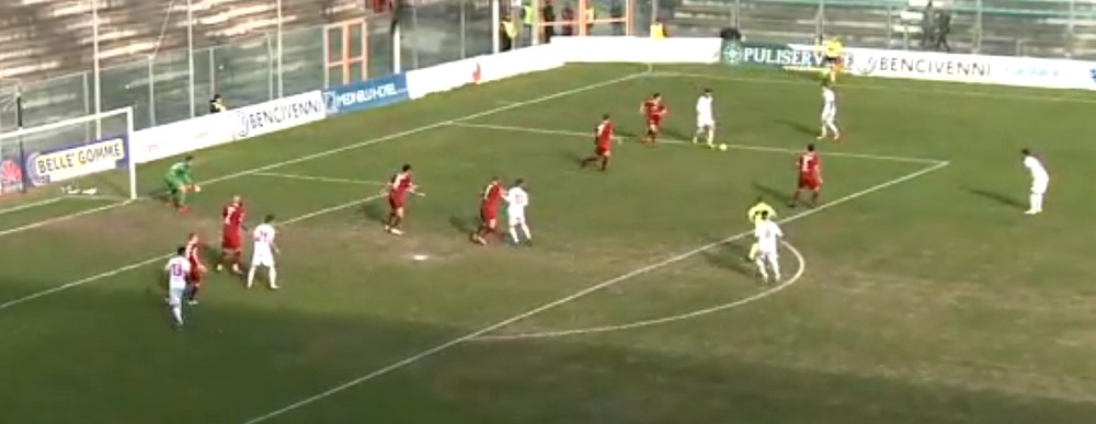 Posizionato nell’attacco a due, Casoli appena entrato in campo chiede palla a Celiento che lo serve, si allarga e aspetta l’inserimento di Maita in area. Il capitano riceve e cerca il fondo mettendo un preciso rasoterra al centro dell’area ma Iuliano spara alle stelle. Un’altra azione da manuale.