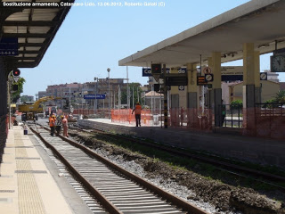 Ecco la causa della soppressione dell’insolito treno: parte del primo binario è già stato riposato, con nuovo armamento di rotaie 60 UNI, traversine in cemento armato ed attacco elastico. Il binario 2 invece è ancora in parte presente lato Crotone, mentre è totalmente asportato lato Reggio. Finisce in un certo senso un’epoca, visto che i primi due binari della stazione di Catanzaro Lido risalivano ad almeno 25 anni fa…su quelle rotaie hanno effettuato fermata quasi tutti i treni a lunga percorrenza ormai soppressi che collegavano lo Jonio con il resto d’Italia, oltre a qualche sporadica presenza di rango degli InterCity ed Espressi della Tirrenica, deviati via Jonica durante le interruzioni…