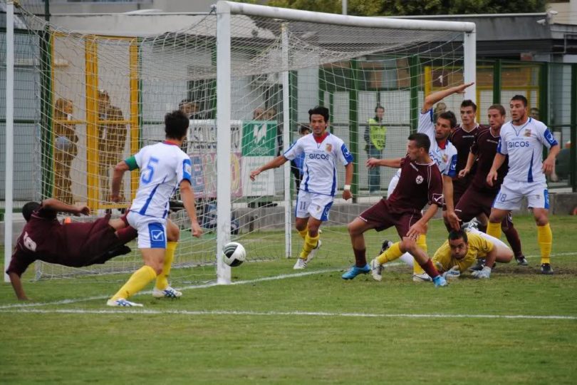 Inizia la ripresa ma il vento non soffia più così veemente, poco male, anzi forse è meglio, perché adesso possiamo giocare meglio a pallone vista la bravura nel nostro possesso e circolazione della palla. Invece ci sediamo, aspettiamo gli avversari nella nostra metà campo e non riusciamo a ripartire. Non abbiamo gli uomini per farle le ripartenze. Esposito, l’unico che per caratteristiche avrebbe il passo per partire è legnoso, Carboni e Masini li conosciamo già e sappiamo che non hanno nelle loro armi la velocità. Ci manca Bruzzese e quanto avvenne ad Eboli (quando causò l’espulsione del difensore avversario) non potrà accadere oggi. Noi non superiamo più la metà campo, Cozza se ne accorge e cambia qualcosa. Entra Ulloa (bene a prescinderedal risultato) per Esposito e rinforziamo il centrocampo per difenderci meglio. Cambia poco però, continuiamo a stare chiusi e un batti e ribatti consegna la palla alla loro ala destra Petagine che da solo si presenta davanti a Mengoni e lo trafigge.
