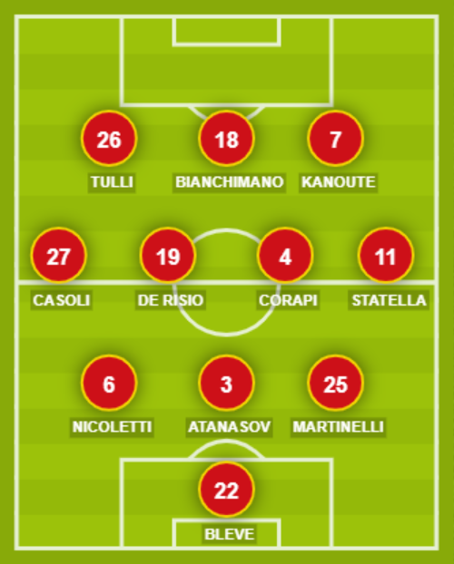Indisponibili: Pinna, Di Gennaro, Signorini, Mangni. Squalificati: Celiento. Diffidati: Signorini.