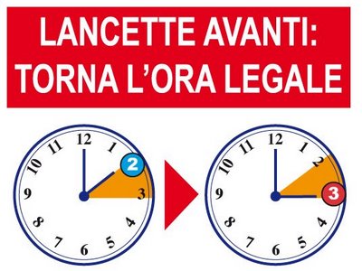 Ora legale, ci siamo: stanotte il cambio dell’ora. Per la precisione si metteranno avanti le lancette tra le due e le tre di notte di Domenica 29 Marzo 2015.
