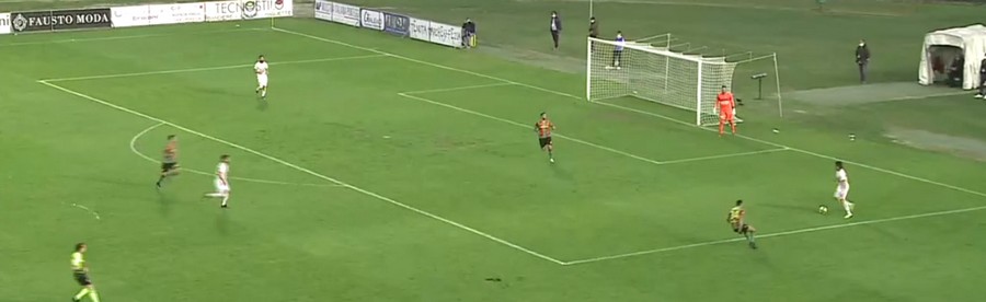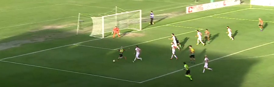 Carlini segna, ma non esulta. Probabilmente è consapevole che il pareggio avrà vita breve, ma intanto la squadra sembra aver preso confidenza e allo scadere sfiora addirittura la rete del vantaggio con una magnifica girata di testa di Evacuo.