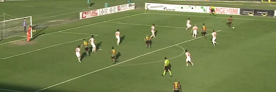 Sbagliare un appoggio corto è da parrocchia, non riuscire a evitare di farsi anticipare o farsi chiudere le linee di passaggio è frustrante. La mediana del Catanzaro è il più lacunoso dei tre reparti proprio perché non riesce a prevalere sull’avversario né sul piano della velocità di scambio, né su quello della fisicità.