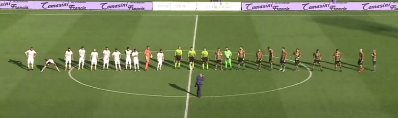 Rossoverdi schierati da Lucarelli con il consueto 4-2-3-1 che vedeva Iannarilli in porta, Defendi Kontek Boben e Mammarella in difesa, Palumbo e Damian a centrocampo con la linea dei trequartisti Partipilo Falletti e Torromino davanti l’unica punta Raicevic.