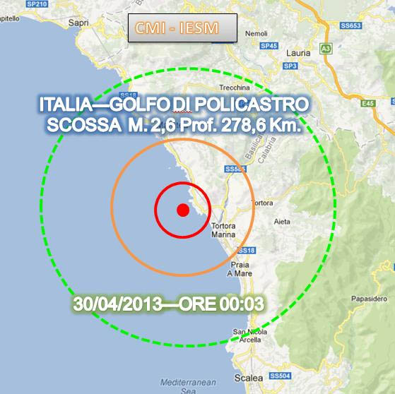 Un sisma di magnitudo 2.6 è stato registrato nella notte scorsa (tre minuti dopo la mezzanotte) nel Golfo di Policastro, lungo la costa tra Basilicata e Calabria. L’epicentro individuato dall’Ingv (Istituto nazionale di geofisica e vulcanologia) è in mare alla profondità di 278,6 chilometri ed ha interessato i comuni di Maratea e Trecchina, in provincia di Potenza, e quelli di Aieta, Praia a Mare e Tortora nel cosentino.