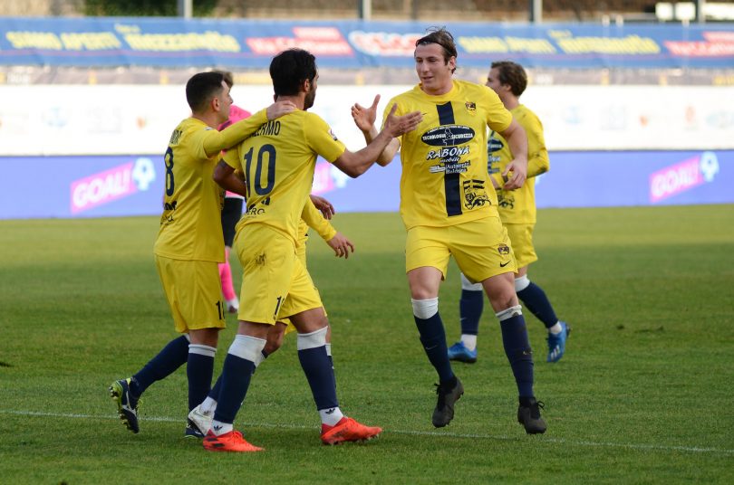 Soprattutto sul lato sinistro del campo, dove si associano Francesco Salandria e Oliver Urso. Il primo, mezzala nel centrocampo a tre, calabrese di Trebisacce, è un volto noto della categoria, dati i trascorsi con il Catania e, soprattutto, con la Reggina. Si tratta di un centrocampista di buon piede bravo a resistere alla pressione. Urso invece è un classe ’99 italo-danese, come suggerisce il colore dei capelli. Ha un passato da trequartista e da esterno di centrocampo, che emerge ogni volta che ha la palla. Urso è bravissimo a condurre in diagonale verso l’interno e a tagliare palla al piede le linee avversarie. Le combinazioni sulla fascia cercano di liberare spazio per il cross, mentre i compagni sul lato debole invadono l’area.