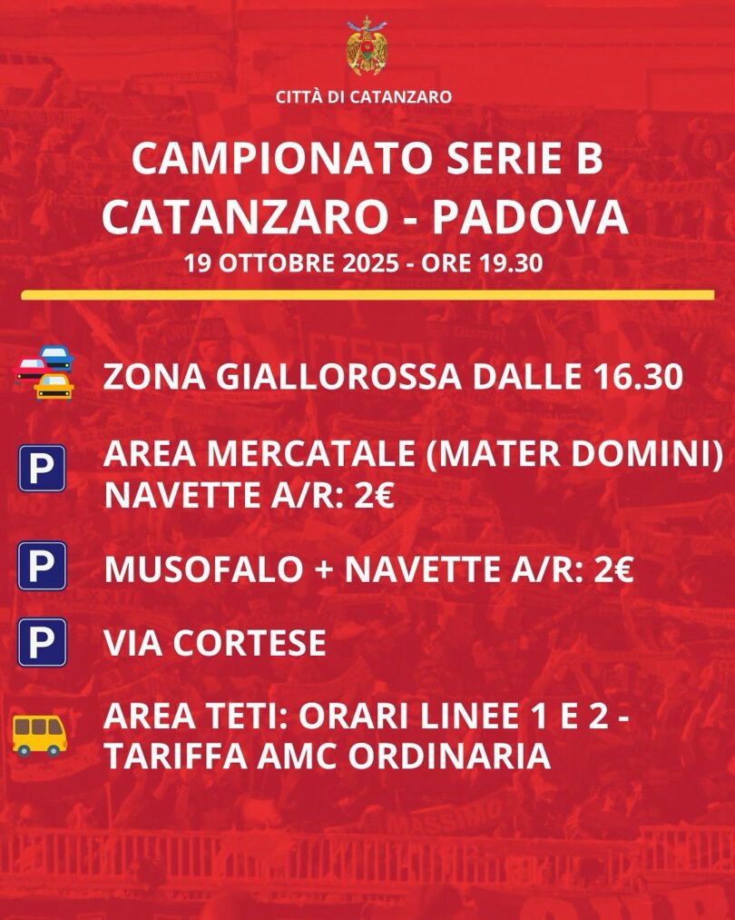 Domenica 19 ottobre 2025, raggiungi lo stadio con noi e supporta il #Catanzaro 💛❤